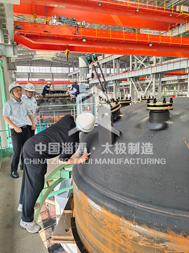此次國外客戶定制的6臺國際標(biāo)準(zhǔn)的搪玻璃反應(yīng)釜,在連續(xù)3天的 “品質(zhì)攻堅(jiān)戰(zhàn)” 中,都經(jīng)歷了如同 “闖關(guān)” 般的嚴(yán)苛檢驗(yàn)。面對國外質(zhì)檢工程師近乎 “挑剔” 的標(biāo)準(zhǔn),對于罐體的精密測量、瓷釉厚度及導(dǎo)電檢測、管口定位校準(zhǔn)等嚴(yán)苛考驗(yàn)。